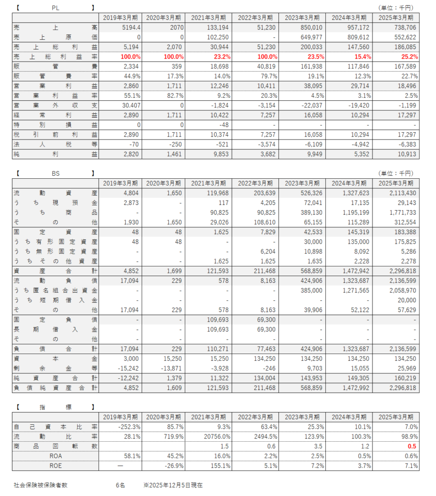株主と同社のBS、PLの細部を見て思うのは、親会社の不特ヴィークル?な印象です。