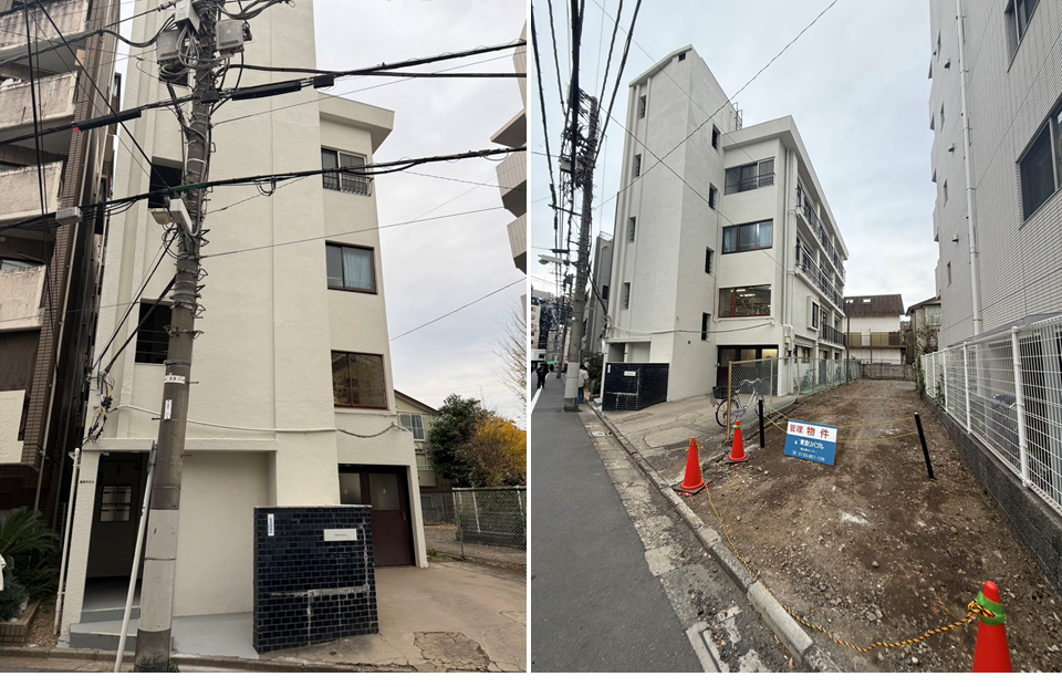 2件を更地にしてマンションディベロッパーに売却することになると思いますが、左建物の1,2階に法人、3階に個人の方が入居中のようでした。※前書面では入居者1件。