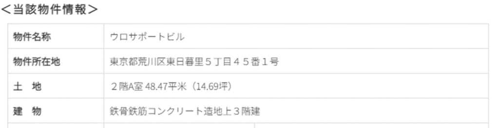 六本木ブレインマッピングプレイス?に投資したようですが、物件の所在地が荒川区東日暮里と意味がわかりませんが、とりあえず物件情報は以下の通りです。区分事務所みたいですね。