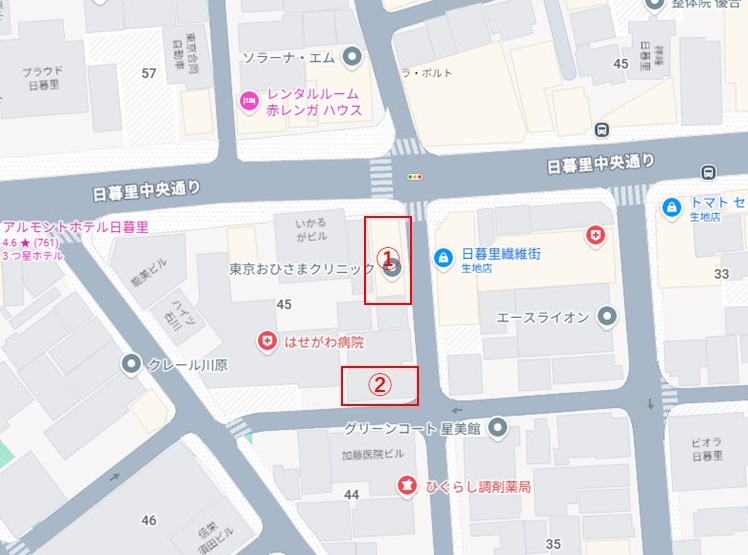 物件所在地が住居表示か地番表示か不明ですが、住居表示では①と②が該当し、地番表示だと②が該当するようです。