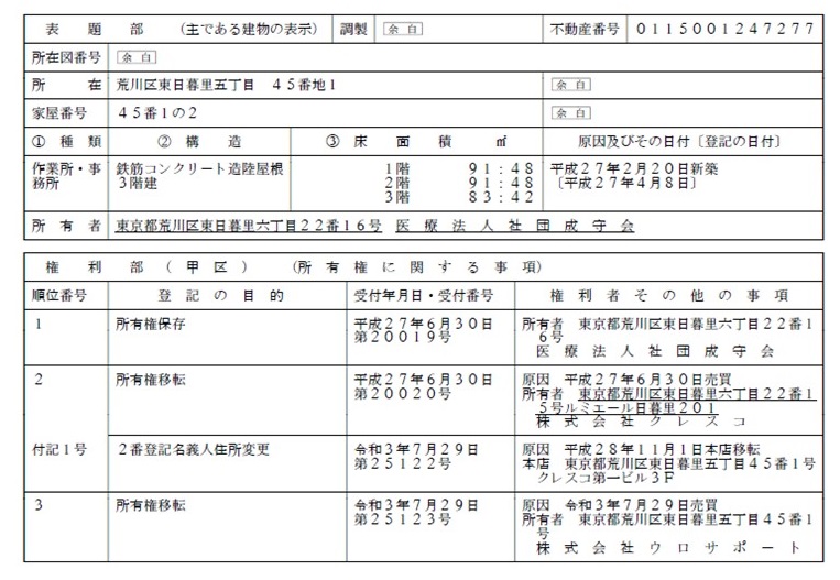 登記を確認すると、土地は個人、建物は令和3年に株式会社ウロサポートが取得していますが、区分登記はされていないようです。