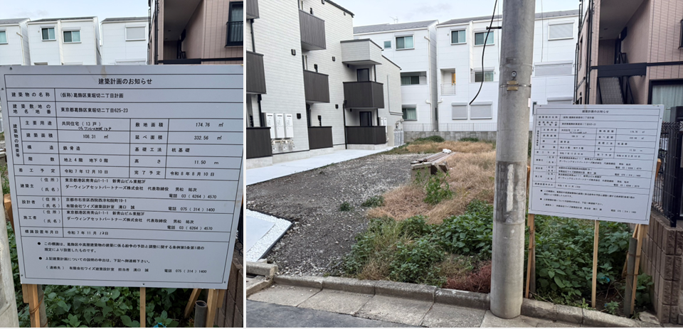 DARWIN funding 開発型32号 現地調査 X Facebook はてブ LINE コピー 2025.12.16 募集書面では「建築中のため記載なし」とありますが、ご覧のとおりで囲いすらなく。着工予定日は12月10日と記載してあります。施行者が「ダーウィンアセットパートナーズ株式会社」になっており、自社で施工するんでしょうか?